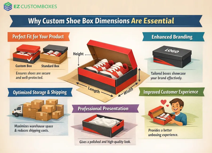 In the footwear industry, packaging is more than protection it is part of the product experience. For ecommerce businesses, choosing the right shoe box dimensions for custom packaging directly impacts shipping costs, product safety, customer satisfaction, and brand perception.